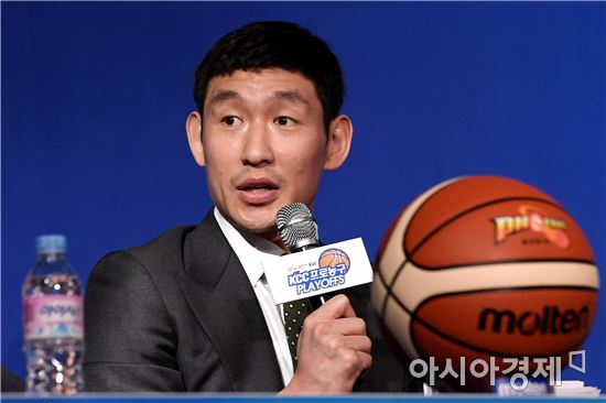 [아시아경제 김현민 기자] 2016-2017 프로농구 플레이오프 미디어데이가 28일 서울 서초구 더케이호텔에서 열렸다. 모비스 양동근이 팀별 질의응답을 하고 있다.