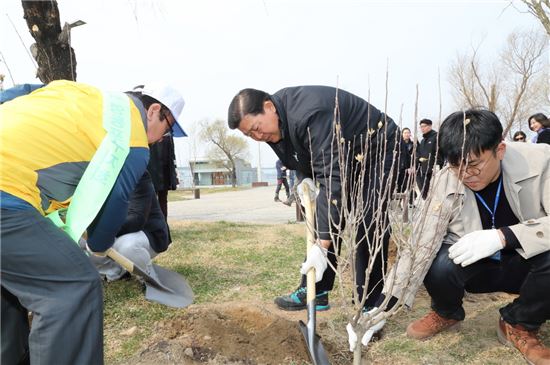 [아시아경제 박종일 기자] 영등포구(구청장 조길형)가 29일 오후 한강시민공원 여의도 지구 둔치 녹지대에서 제72회 식목일을 기념해 나라꽃 무궁화 심기 행사를 개최했다.