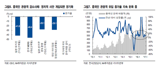 한 연구원은 "1분기의 경우 예상보다 좋은 실적이 나온다 하더라도 향후 전망에 대한 단서를 제공하기에는 역부족이라는 판단"이라며 "중국 정부의 한국 여행 규제가 본격화된3월 후반 정도만 중국인 관광객 급감의 영향을 받았을 것이기 때문"이라고 설명했다.