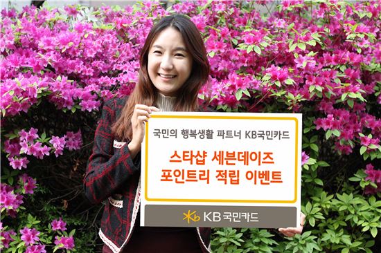 [아시아경제 정현진 기자] KB국민카드가 제휴 가맹점인 '스타샵 적립 가맹점'에서 포인트리로 결제하면 포인트리 최대 7000점 적립 혜택을 제공하는 '스타샵 세븐데이즈 포인트리 적립 이벤트'를 진행한다고 4일 밝혔다.
