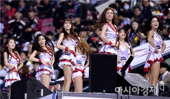 [아시아경제 김현민 기자]프로야구 삼성 라이온즈와 LG 트윈스의 2017 KBO리그 경기가 4일 잠실구장에서 열렸다. LG 치어리더가 공연을 선보이고 있다.