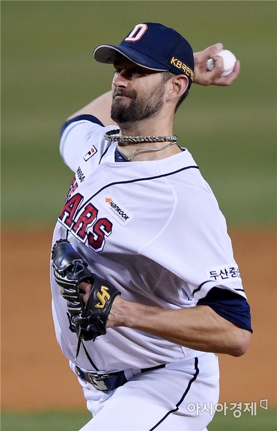 [아시아경제 김현민 기자]프로야구 넥센 히어로즈와 두산 베어스의 2017 KBO리그 경기가 7일 잠실구장에서 열렸다. 두산 선발투수 니퍼트가 역투하고 있다.