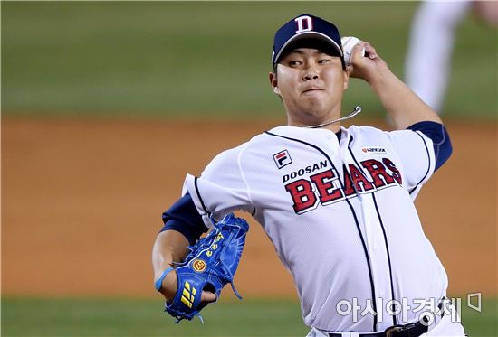 [아시아경제 김현민 기자]프로야구 넥센 히어로즈와 두산 베어스의 2017 KBO리그 경기가 7일 잠실구장에서 열렸다. 두산 구원투수 이현호가 6회초 역투하고 있다.