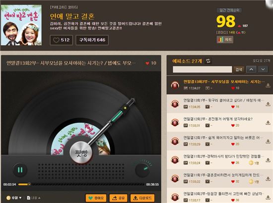 심진화는 희극인 김미려와 함께 지난 1월17일 연애와 결혼에 대한 팟캐스트를 시작했고 현재 646명이 구독 중이다.