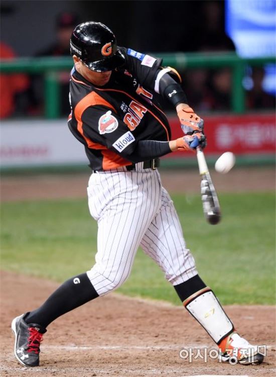 [인천=아시아경제 김현민 기자] 프로야구 롯데 자이언츠와 SK 와이번스의 2017 KBO리그 경기가 11일 인천 SK행복드림구장에서 열렸다. 3회초 무사 만루에서 롯데 강민호가 동점 1타점 우익수 희생플라이를 치고 있다.