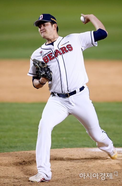 [아시아경제 김현민 기자]프로야구 KIA 타이거즈와 두산 베어스의 2017 KBO리그 경기가 12일 잠실구장에서 열렸다. 8회초 두산 구원투수 장민익이 역투하고 있다.
