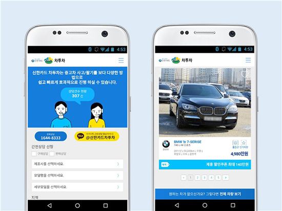 한편, 신한카드 차투차는 직영서비스를 기반으로 한 중고차 매매 플랫폼으로 중고차를 구입할 때 제휴할인쿠폰을 제공해 PC와 모바일로 간편하게 평균 가격보다 최대 200만원까지 저렴한 가격으로 사고팔 수 있다.