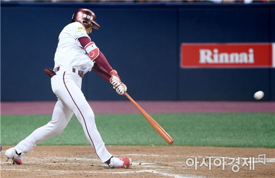 [아시아경제 김현민 기자]프로야구 kt 위즈와 넥센 히어로즈의 2017 KBO리그 경기가 13일 고척돔에서 열렸다. 4회말 무사 1루에서 넥센 이정후가 좌전 안타를 치고 있다.
