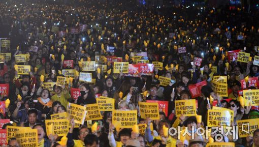 [아시아경제 문호남 수습기자] 세월호 참사 3주기를 하루 앞둔 15일 서울 종로구 광화문 광장에서 열린 22차 촛불집회에서 시민들이 세월호 참사 추모 및 진상규명을 촉구하며 구호를 외치고 있다.