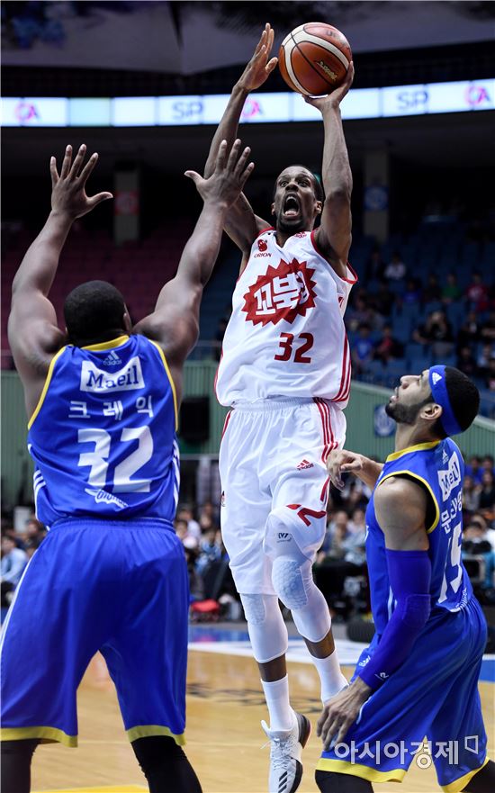 [아시아경제 김현민 기자]프로농구 서울 삼성과 고양 오리온의 2016-2017 시즌 4강 플레이오프 4차전이 17일 잠실실내체육관에서 열렸다. 오리온 헤인즈가 상대 수비를 뚫고 공격하고 있다.