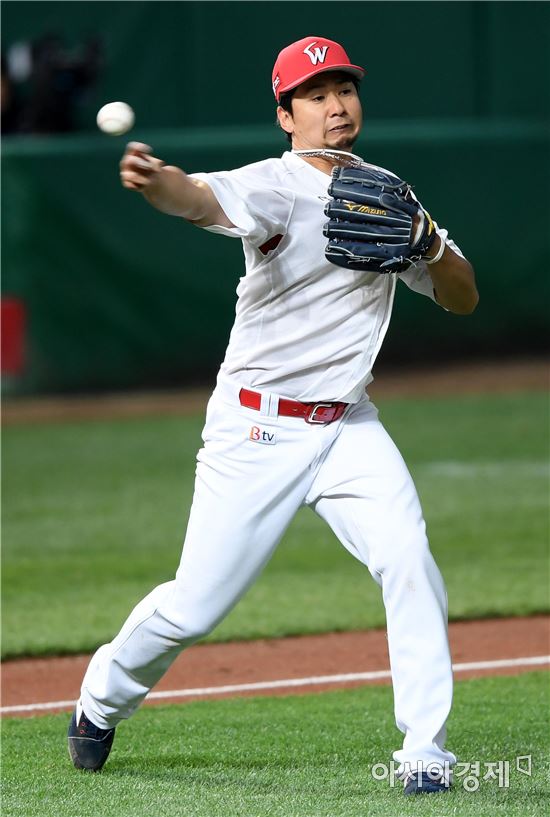 [인천=아시아경제 김현민 기자]프로야구 넥센 히어로즈와 SK와이번스의 2017 KBO리그 경기가 20일 인천 SK행복드림구장에서 열렸다. SK 선발 윤희상이 5회초 무사 1루에서 넥센 김하성의 번트 타구를 수비하다 1루 악송구하고 있다.