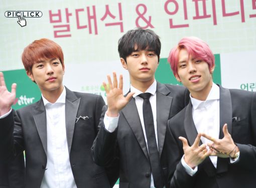 그룹 인피니트 (INFINITE / 성규, 동우, 우현, 호야, 성열, 엘, 성종)가 25일 오후 서울 종로구 초록우산 어린이재단 앞 광장에서 열린 '감사편지쓰기 공모전 발대식 및 홍보대사 위촉식'에 참석해 포즈를 취하고 있다.