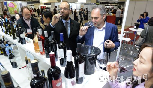 [아시아경제 문호남 수습기자] 27일 서울 강남구 삼성동 코엑스에서 열린 2017 서울 국제 와인&주류 박람회를 찾은 관람객들이 와인을 시음하고 있다.