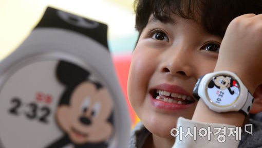 [아시아경제 문호남 수습기자] 30일 서울 을지로 SK텔레콤 T타워 어린이집에서 어린이들이 쿠키즈워치 '준(JooN) 스페셜 에디션' 3종을 착용하고 있다. 이번에 출시한 '준 스페셜 에디션'은 기존 쿠키즈워치 준3의 자녀안전 관리 및 방수 기능을 그대로 유지하면서, 디즈니와 마블 캐릭터를 시계와 밴드 및 메뉴 화면까지 새롭게 디자인한 모델로 출고가는 283,800원이다.