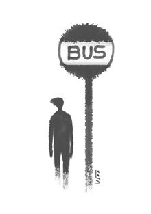 버스가 전조등을 뿜으며 다가오기를