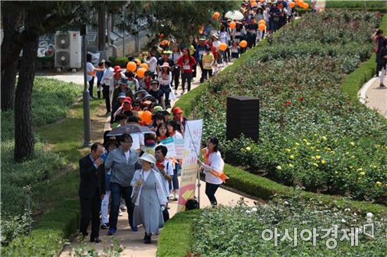 이날 걷기대회는 ‘광양포에버윈드오케스트라’의 화려한 축하공연을 시작으로 개회식에 이어 치매파트너와 참가자가 함께 하는 치매예방체조로 준비운동을 한 후 장미공원 2.5km 구간을 걸으며 치매 관련 정보를 관람하는 등 다채로운 체험거리로 진행됐다.