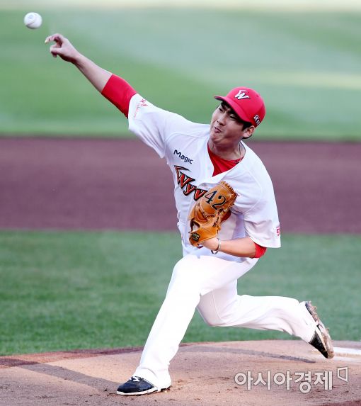 [인천=아시아경제 김현민 기자]프로야구 삼성 라이온즈와 SK와이번스의 2017 KBO리그 경기가 16일 인천 SK행복드림구장에서 열렸다. SK 선발투수 문승원이 역투하고 있다.