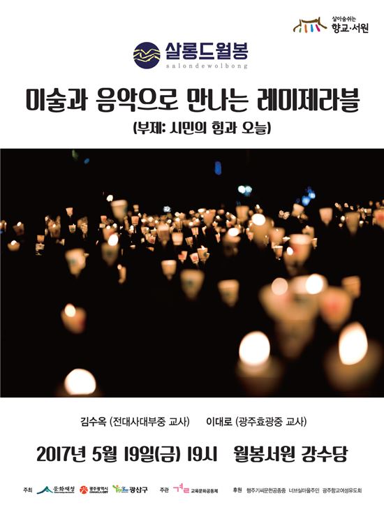 광산구에 따르면 19일 저녁 7시 월봉서원 교육관에서 ‘미술과 음악으로 만나는 레미제라블’을 주제로 ‘살롱 드 월봉’프로그램을 연다.