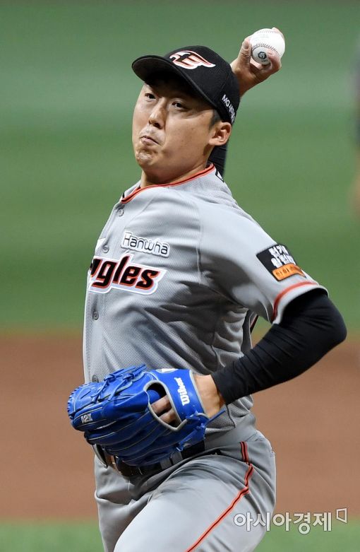 [아시아경제 김현민 기자]프로야구 한화 이글스와 넥센 히어로즈의 2017 KBO리그 경기가 17일 서울 고척돔에서 열렸다. 한화 선발투수 배영수가 역투하고 있다.
