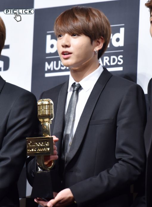 29일 오전 서울 중구 을지로 롯데호텔서울 크리스탈볼룸홀에서 그룹 방탄소년단 (BTS / 랩몬스터, 슈가, 진, 제이홉, 지민, 뷔, 정국)의 빌보드 뮤직 어워드 ‘톱 소셜 아티스트’ 부문 수상 기념 기자간담회가 열렸다. 이 자리에 방탄소년단 정국이 포즈를 취하고 있다.