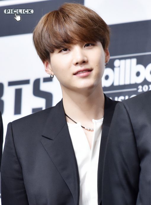 29일 오전 서울 중구 을지로 롯데호텔서울 크리스탈볼룸홀에서 그룹 방탄소년단 (BTS / 랩몬스터, 슈가, 진, 제이홉, 지민, 뷔, 정국)의 빌보드 뮤직 어워드 ‘톱 소셜 아티스트’ 부문 수상 기념 기자간담회가 열렸다. 이 자리에 방탄소년단 슈가가 포즈를 취하고 있다.
