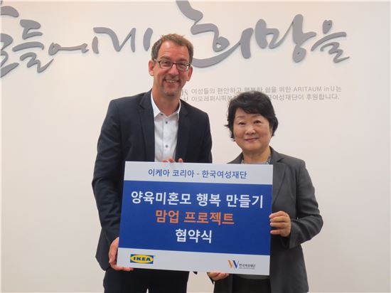 [아시아경제 김유리 기자] 홈퍼니싱 기업 이케아 코리아는 31일 한국사회 소외계층 여성들의 건강하고 행복한 삶을 돕기 위해 서울 서교동 한국여성재단 박영숙홀에서 한국여성재단과 양육미혼모 행복 만들기 지원사업 '맘업 프로젝트(Mom-Up Project)'에 대한 협약식을 가졌다.