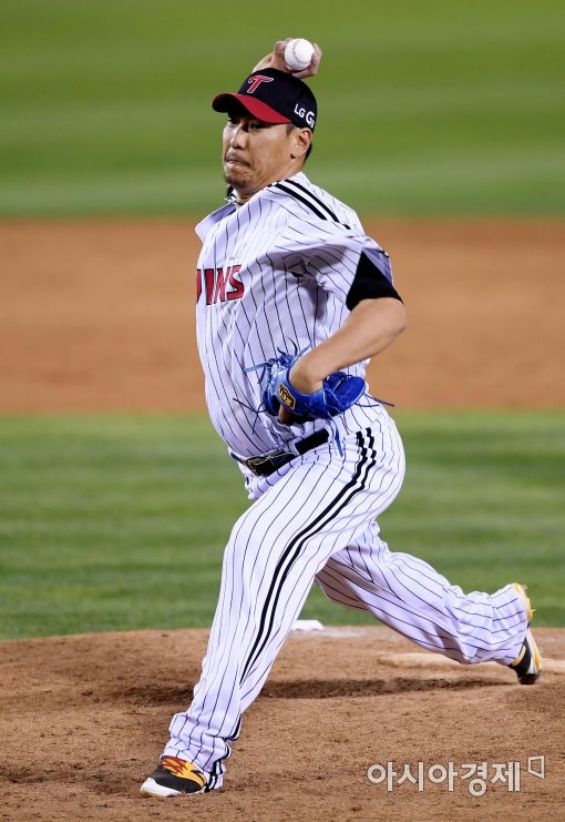 [아시아경제 김현민 기자]프로야구 넥센 히어로즈와 LG 트윈스의 2017 KBO리그 경기가 31일 잠실구장에서 열렸다. 8회초 LG 구원투수 이동현이 역투하고 있다.