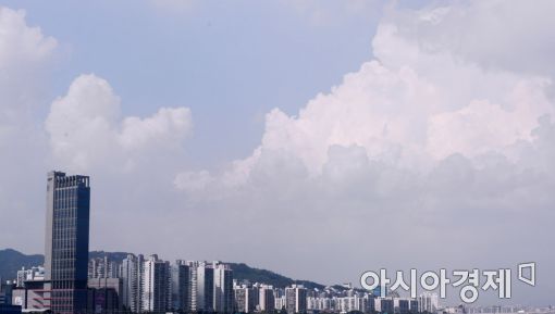 [아시아경제 문호남 수습기자] 선선한 바람이 부는 가운데 전국 곳곳 소나기가 예보된 1일 서울 광진구 뚝섬한강공원에서 구름이 떠다니고 있다.