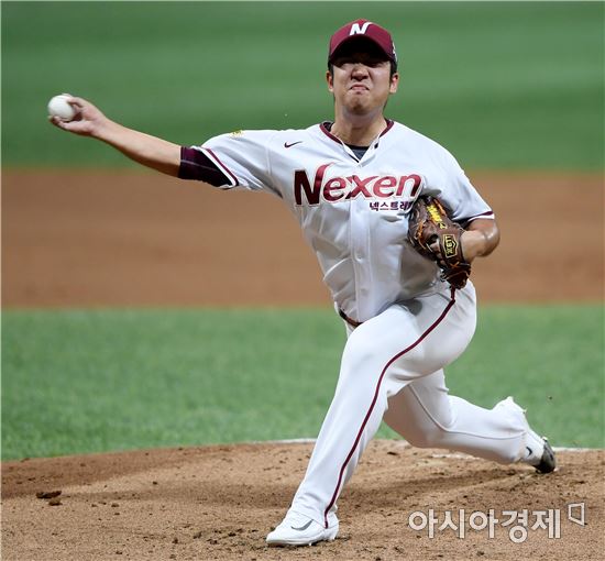 [아시아경제 김현민 기자]프로야구 두산 베어스와 넥센 히어로즈의 2017 KBO리그 경기가 3일 서울 고척돔에서 열렸다. 넥센 선발 신재영이 역투하고 있다.