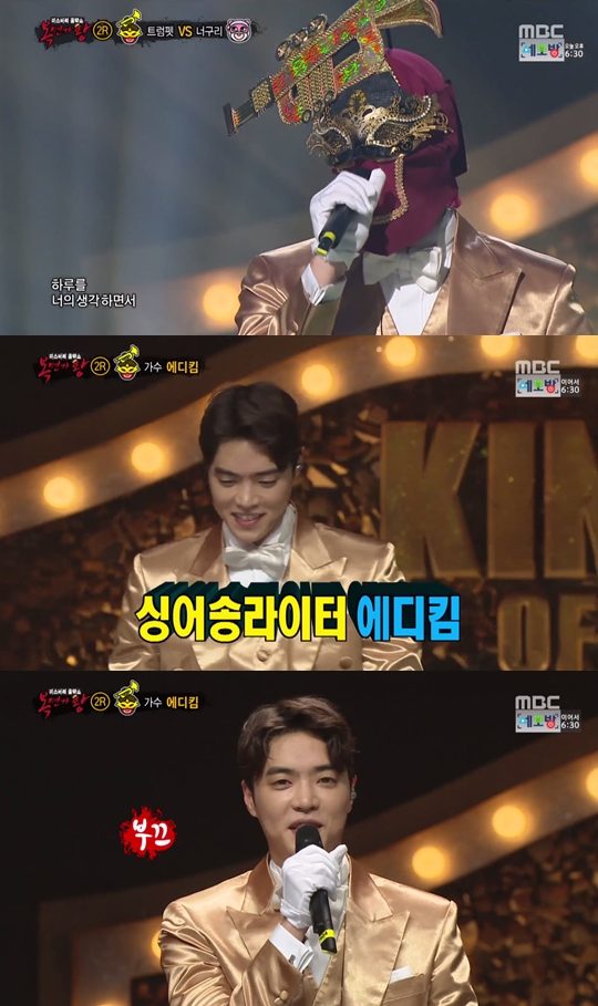 가면을 벗은 '트럼펫'의 정체는 Mnet '슈퍼스타K4' 출신 가수 에디킴으로 밝혀졌다.