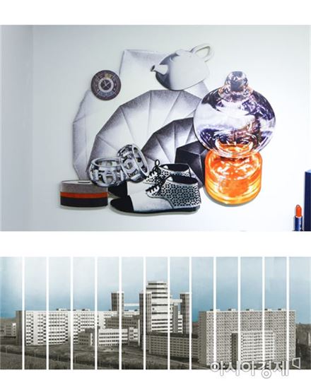 권오상, Relief 12, 2016, Print on wood, Varnish, 126x160x5.4cm(위)/ 백승우, Utopia #032, 2011, Digital print, 219x38x(11)cm, 219x48x(2)cm