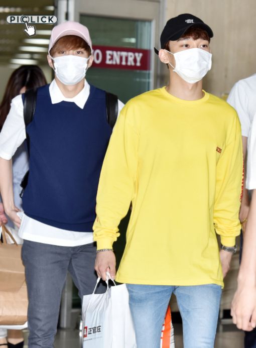 그룹 엑소(EXO) 시우민, 첸이 8일 오후 김포국제공항을 통해 일본 공연을 마치고 입국하고 있다.