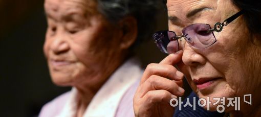 [아시아경제 문호남 수습기자] 이용수 할머니가 8일 서울 중구 프레스센터에서 강경화 외교부 장관 후보자 지지 발언을 마친 뒤 눈물을 훔치고 있다.