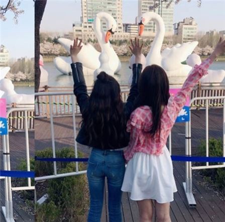 사진 속 두 사람은 뒤로 돌아선 채 하늘을 향해 손을 뻗고 있다. 이들은 앞서 Mnet '프로듀스 101'을 통해 데뷔한 그룹 아이오아이(I.O.I)의 멤버로 함께 활동한 바 있다.
