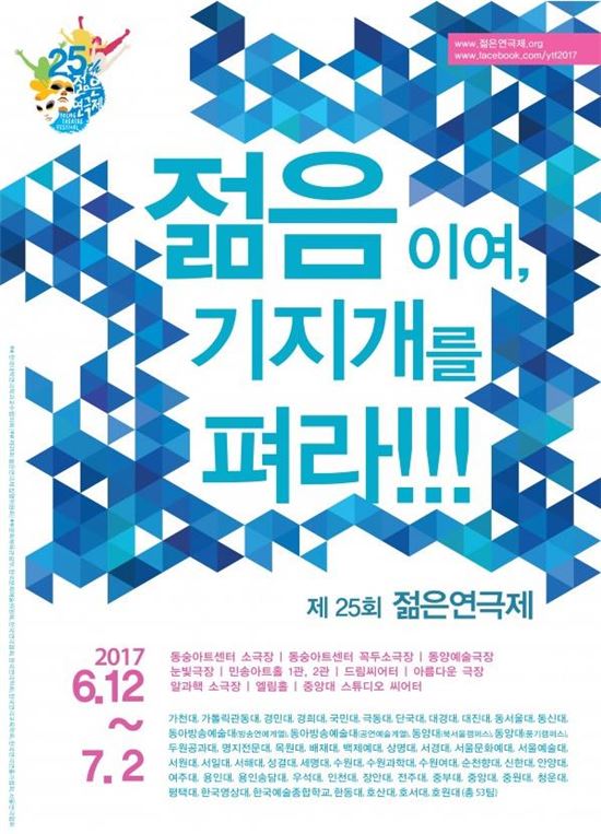 ‘젊음이여, 기지개를 펴라’라는 주제로 열리는 이번 ‘제25회 젊은 연극제’에는 ▲가천대의 광부리어 ▲경희대의 하멸태자 ▲청운대의 햄릿 ▲한예종의 누가 버지니아 울프를 두려워하나 등 고전부터 교수와 학생들이 함께 만든 창작극까지 53개 대학교의 다양한 작품들이 무대에 오른다.