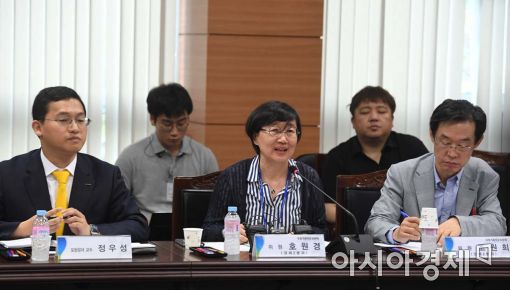 [아시아경제 백소아 기자] 9일 서울 종로구 금융감독원 연수원에 마련된 국정기획자문위원회에서 열린 4차 산업혁명 대비 과학기술 정책 관련 간담회에서 호원경 전문위원(가운데)이 발언을 하고 있다. 이날 간담회에서는 '과학기술이 바라본 4차 산업혁명'을 주제로 토론이 진행된다.