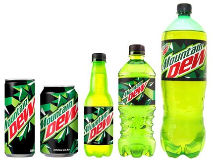 리뉴얼 마운틴듀는 라벨 디자인에 강렬한 블랙 컬러를 주 배경색으로 사용하고 거친 느낌을 주는 서체를 적용해 마운틴듀 브랜드 가치인 역동성과 짜릿함, 카리스마를 표현했다. 소매점 및 식당 등에서 판매되는 250ml, 355ml 캔과 400ml, 600ml, 1.5L 페트병 총 5개 제품에 해당된다.