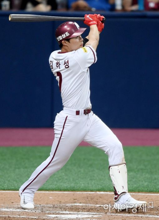 [아시아경제 김현민 기자]프로야구 롯데 자이언츠와 넥센 히어로즈의 2017 KBO리그 경기가 17일 서울 고척돔에서 열렸다. 3회말 무사 만루에서 넥센 김하성이 롯데 선발 박시영을 상대로 만루 홈런을 치고 있다.