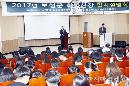 [아시아경제 노해섭 기자]보성군(군수 이용부)은 지난 15일 예당고등학교에서 보성고, 학생 및 학부모, 교사 등 200여 명이 함께한 가운데 녢학년도 대학입시 및 학습전략 설명회’를 개최했다.