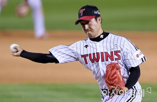 [아시아경제 김현민 기자]프로야구 삼성 라이온즈와 LG 트윈스의 2017 KBO리그 경기가 22일 잠실구장에서 열렸다. 6회초 LG 구원투수 신정락이 역투하고 있다.