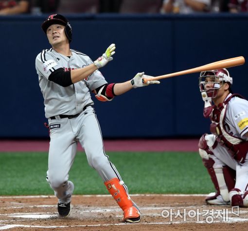 [아시아경제 김현민 기자]프로야구 LG 트윈스와 넥센 히어로즈의 2017 KBO리그 경기가 23일 서울 고척돔에서 열렸다. 3회초 2사 2루에서 LG 이형종이 좌익수 옆 2루타를 치고 있다.