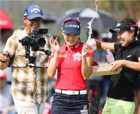 비씨카드컵 최종일 3언더파 '2연패', 5주 연속 '지현 우승', 김해림 대상 포인트 1위 접수