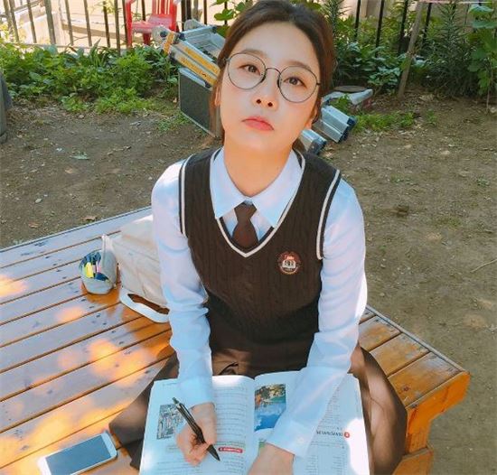 게재된 사진 속 그는 교복을 입고 여고생으로 분해 30대임이 믿겨지지 않는 동안미모를 뽐내고 있어 눈길을 끌었다.