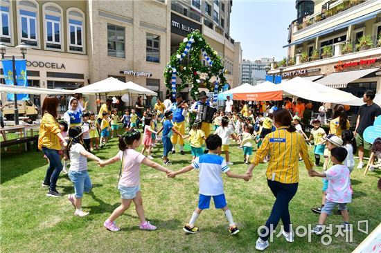 [아시아경제 김유리 기자] 고양시 일산동구의 한 쇼핑센터 앞마당. 뜨거운 햇살이 내리쬐는 와중에도 스웨덴 전통의상을 차려입은 이들의 얼굴에는 미소가 가득하다. 이들은 초대된 이 지역 어린이 120여명과 스웨덴 전통놀이 '피스크담 낚시', 스웨덴 마스코트 '달라호스' 색칠놀이, 화관 만들기 등을 함께했다. 둥글게 손을 잡고 돌며 춤을 추기도 했다. 현장에는 다양한 체험에 나선 아이들의 웃음소리 역시 끊이지 않았다.