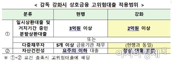 농·신협 등 상호금융권은 2억원 이상 일시상환 부동산담보대출에 대해 연체 여부에 상관없이 추가충당금을 쌓아야 한다. 저축은행은 금리가 연 20% 이상인 신용대출, 카드사는 2개 이상 카드론을 받은 다중채무에 대한 충당금이 늘어난다.