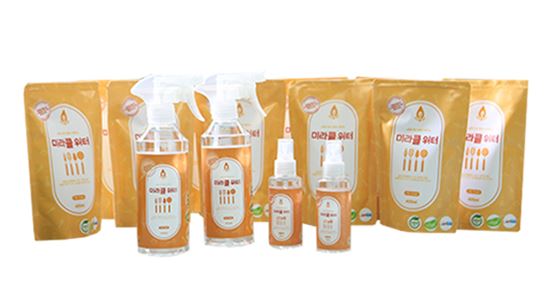 미라클워터 친환경세정제는 로하스 인증제품으로 안심하고 사용가능한 친환경 제품이다. 대장균, 비브리오균 등 여름철 각별히 주의해야하는 유해균을 99.9% 제거하는 살균력과 찌든 때, 묵은 때를 100% 알칼리 전해환원수로 세정할 수 있는 것이 장점이다. 주방과 욕실은 물론 방충망, 개수망, 창틀, 에어컨필터 등 생활용품에도 다양하게 사용 가능하다.