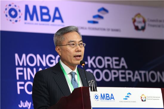 [아시아경제 박소연 기자]하영구 은행연합회 회장은 4일 몽골 울란바타르의 베스트 웨스턴 프리미어 투신 호텔에서 몽골은행협회와 공동으로 '한·몽골 금융협력포럼'을 개최했다.
