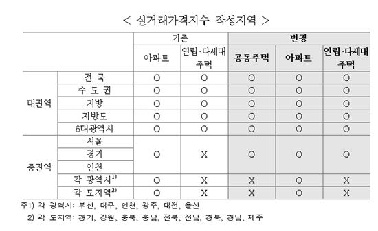 한편 기존 연립·다세대주택 매매 실거래가격지수는 연립·다세대 매매 실거래가격지수는 연립·다세대 주택 전체 재고량의 70% 이상이 수도권에 분포돼있어 수도권 지역 지수를 아파트와 마찬가지로 월별 발표로 확대한다.