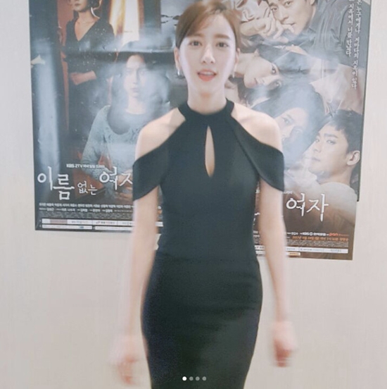 공개된 사진 속 그는 세련된 매력이 돋보이는 블랙 원피스로 시선을 사로잡았다.
