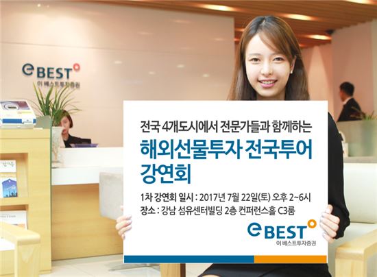 [아시아경제 권성회 기자] 이베스트투자증권은 22일부터 해외선물 전문가들과 함께하는 '해외선물투자 전국투어 강연회'를 개최한다고 20일 밝혔다.